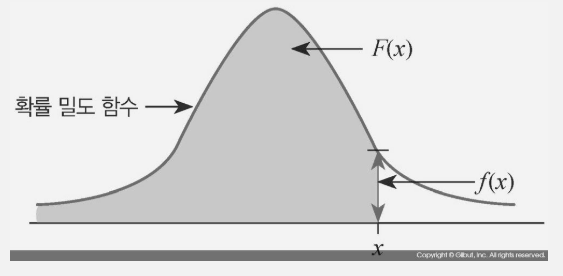 연속확률밀도함수가 연속이라면 누적 분포 함수를 미분하면 확률밀도 함수(연속확률밀도함수)를 얻습니다. 그러므로 확률밀도함수는 적분하면(면적은) 누적 분포 함수입니다.